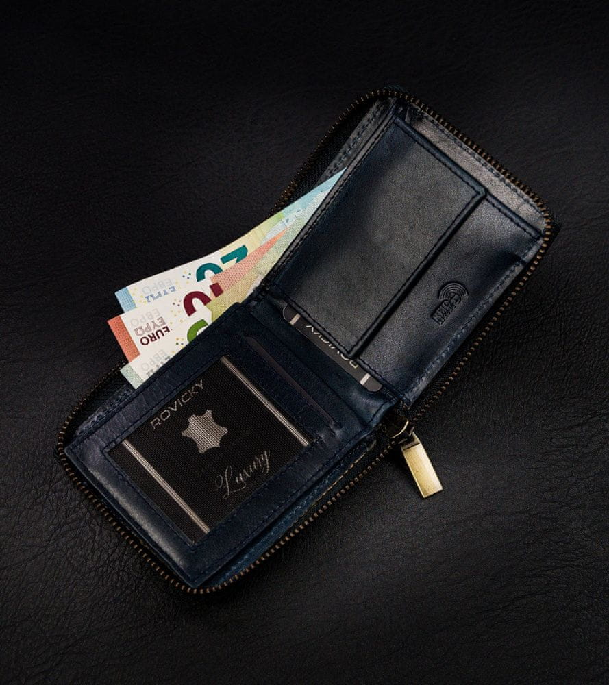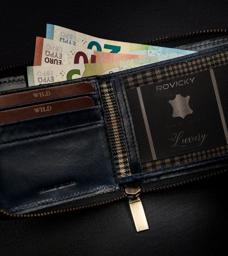 Always Wild Usnjena moška kvadratna denarnica z retro zadrgo, RFID