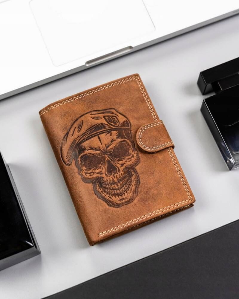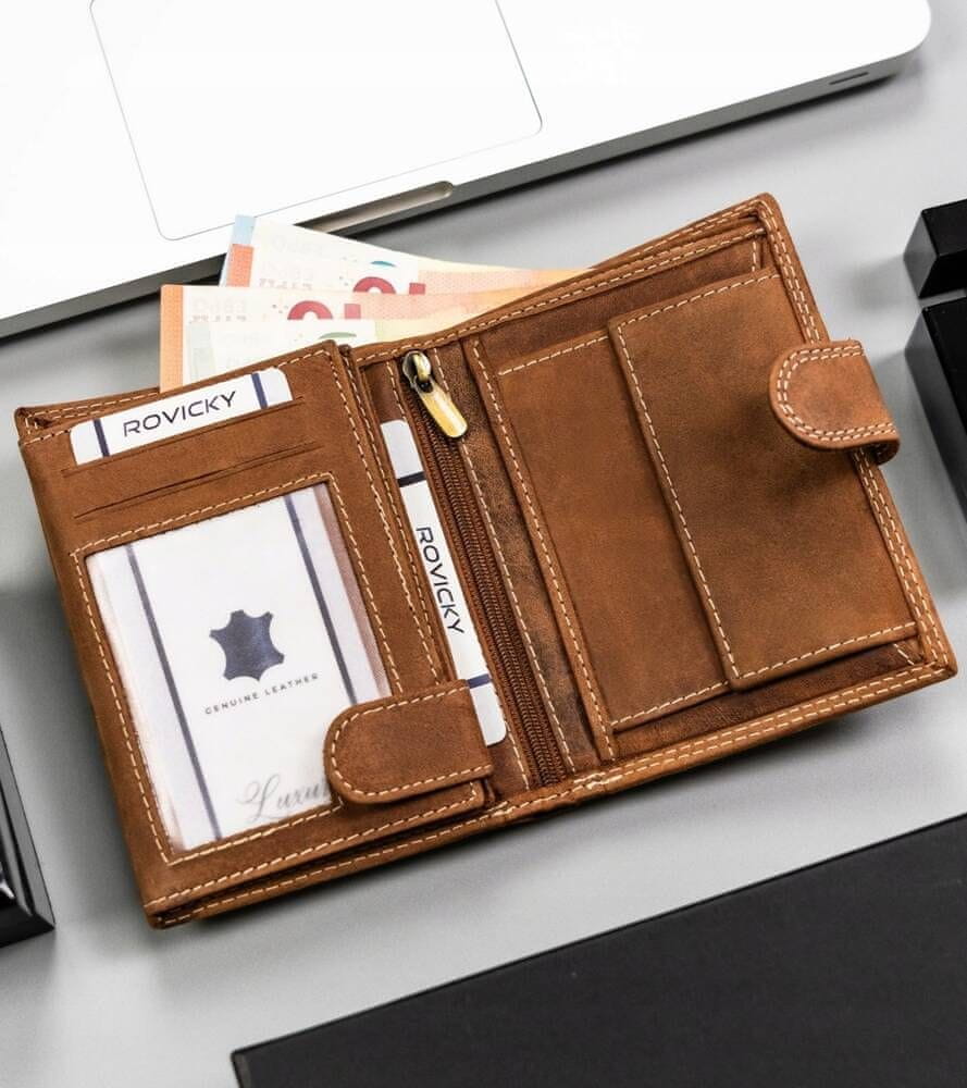 Velika, pokončna moška denarnica iz naravnega usnja Celoten opis