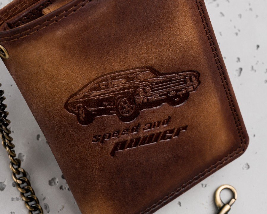 Velika, usnjena moška denarnica z verižico Celoten opis