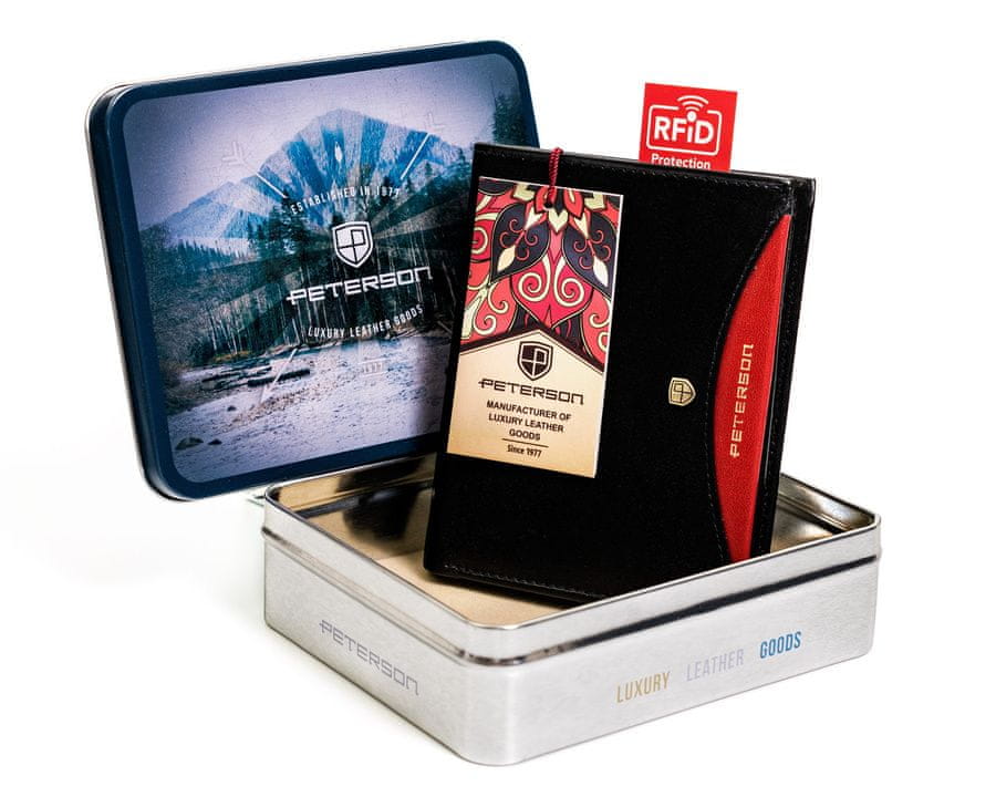 Peterson Črna navpična moška usnjena denarnica