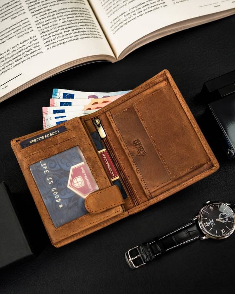 Peterson Moška denarnica brez zaponke iz naravnega nubuk usnja