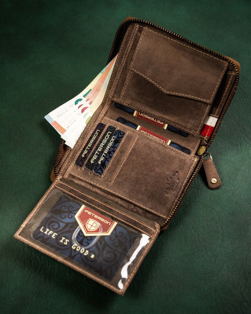 Peterson Velika moška denarnica iz naravnega usnja nubuk