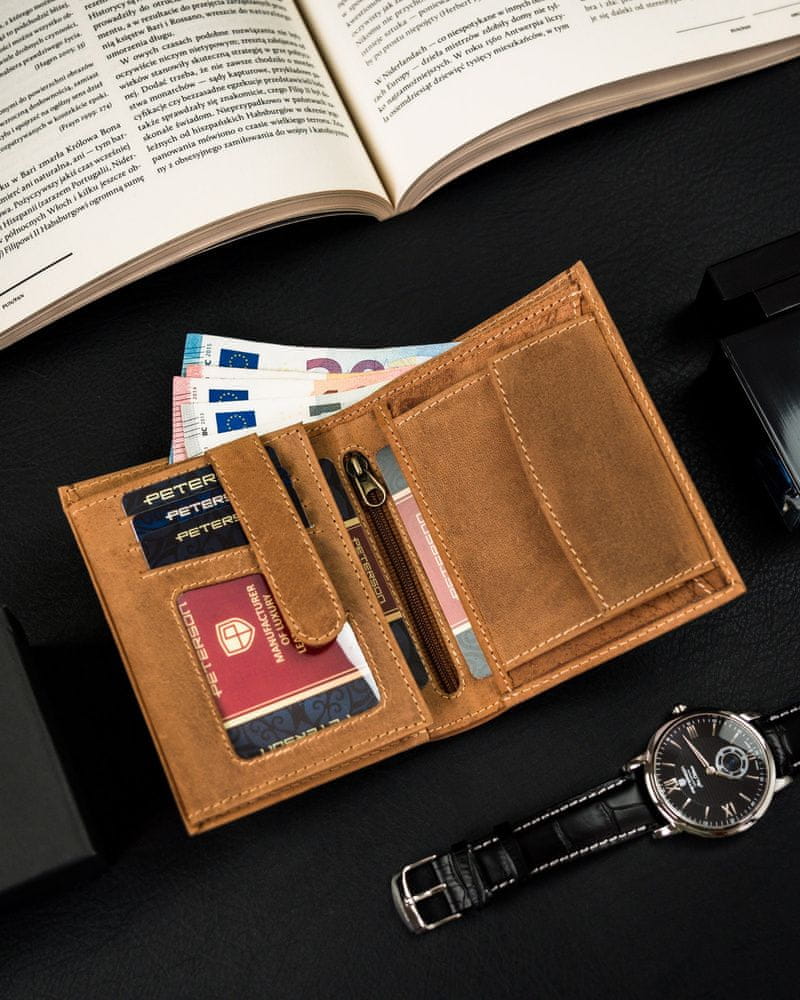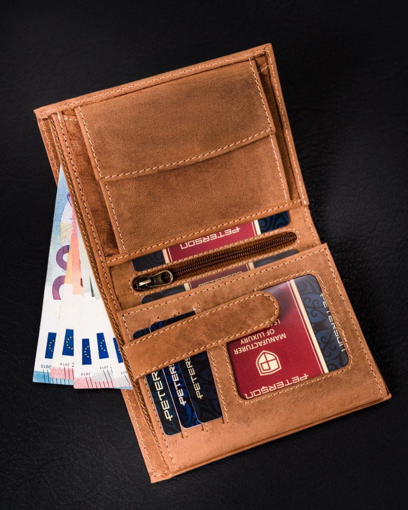 Peterson Velika, pokončna moška denarnica iz naravnega usnja