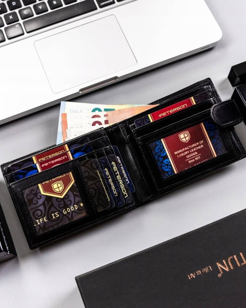 Peterson Velika, usnjena moška denarnica na zaponko