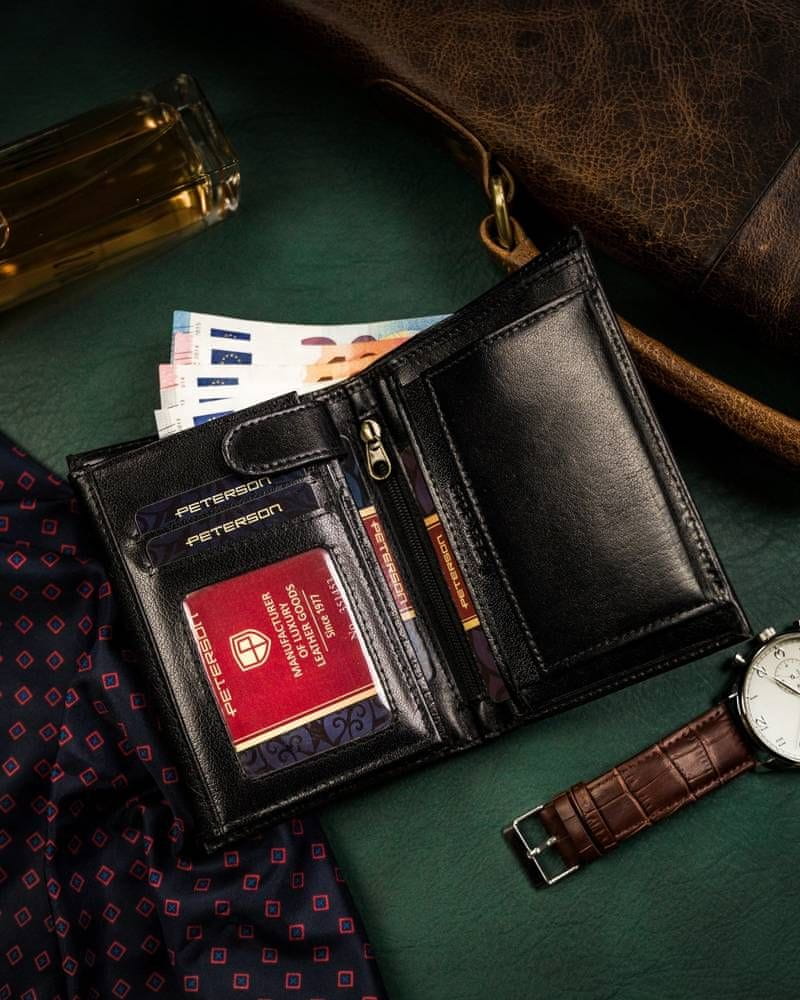 Peterson Velika, usnjena moška denarnica brez zunanje zaponke