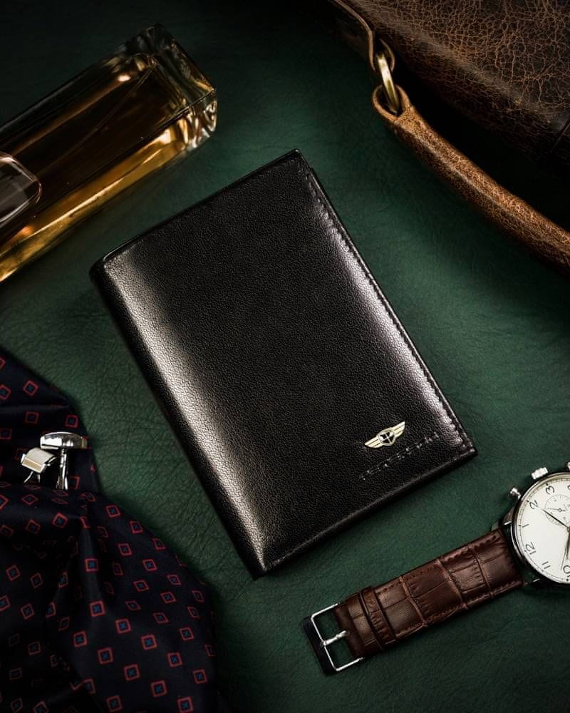 Velika, usnjena moška denarnica brez zunanje zaponke Celoten opis