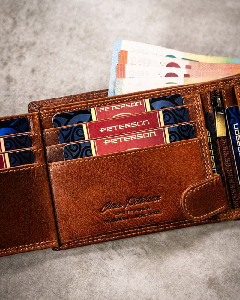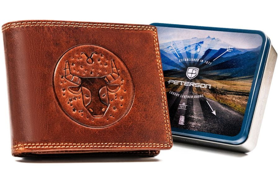 Peterson Velika, usnjena moška denarnica z reliefnim prikazom zodiakalnega znamenja