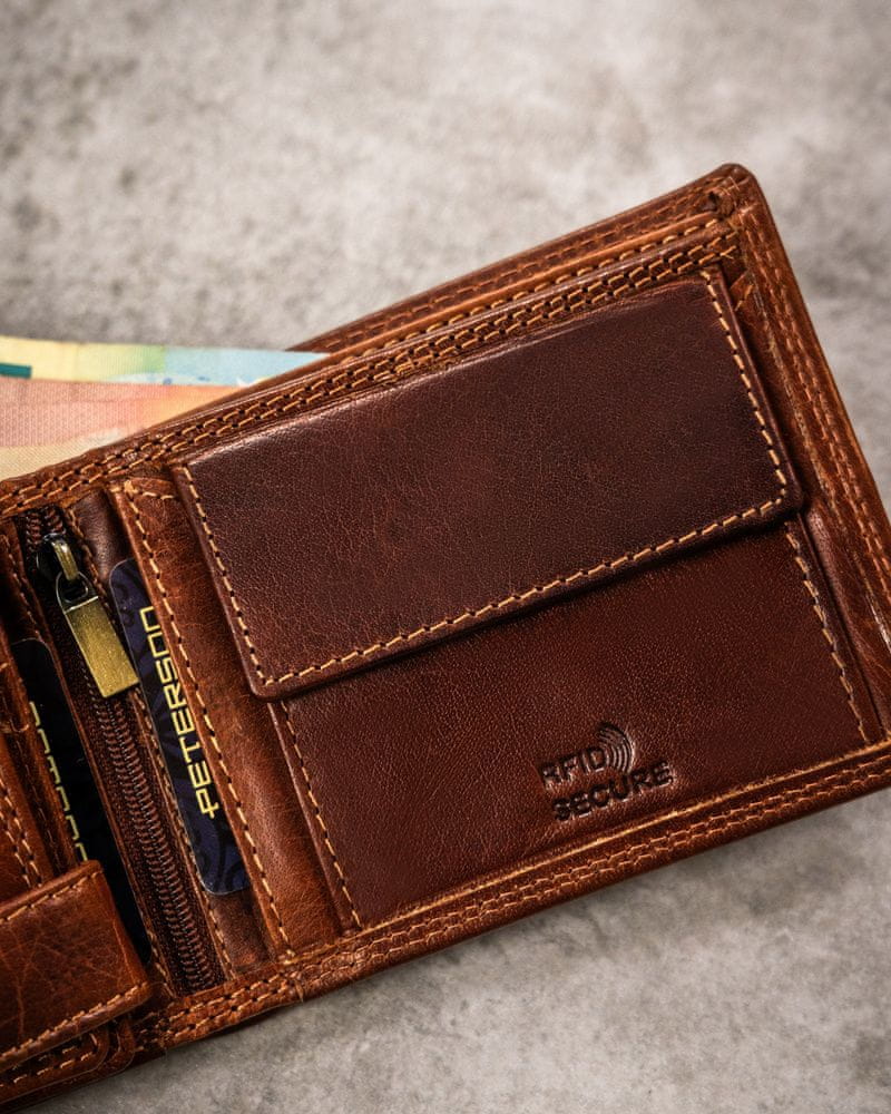 Peterson Velika, usnjena moška denarnica z reliefnim prikazom zodiakalnega znamenja