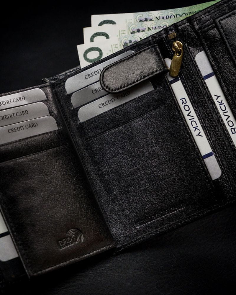 Rovicky Bogato opremljena moška denarnica iz naravnega RFID grain usnja