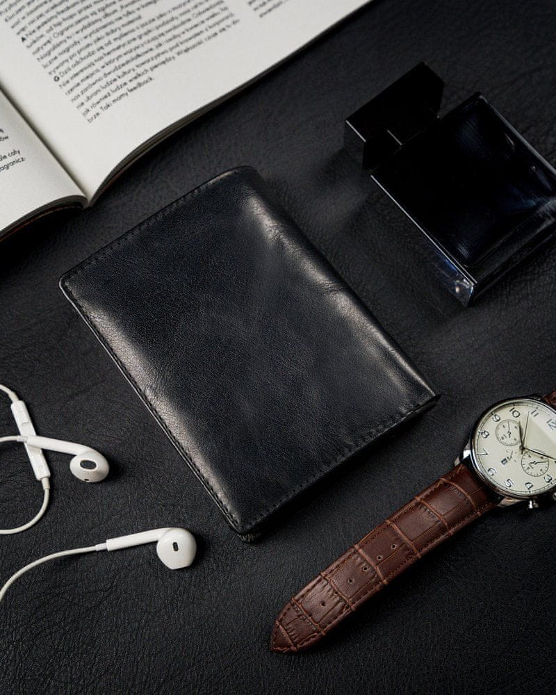 Funkcionalna, vertikalna moška denarnica brez zaponke iz naravnega usnja Celoten opis