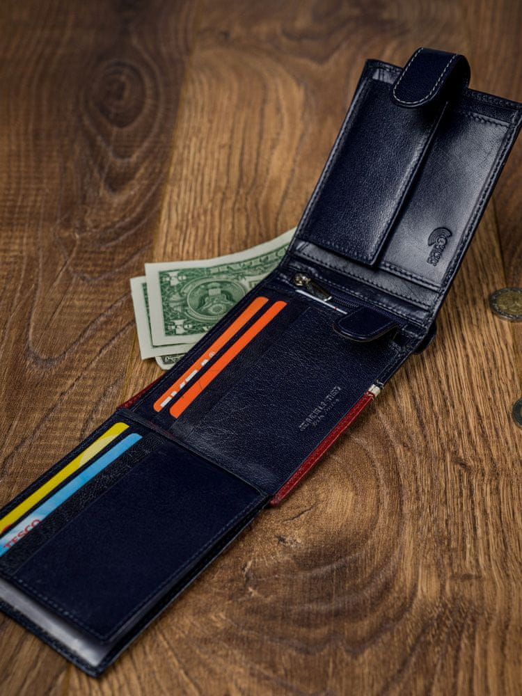 Rovicky Horizontalna dvobarvna moška denarnica iz HQ naravnega usnja