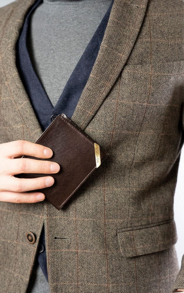 Rovicky Horizontalna moška denarnica z zlatim poudarkom, naravno zrnato usnje