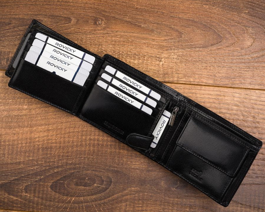 Usnjena moška denarnica brez zaponke RovickyVisoka kakovost izdelave | Denarnica iz naravnega govejega usnja Celoten opis