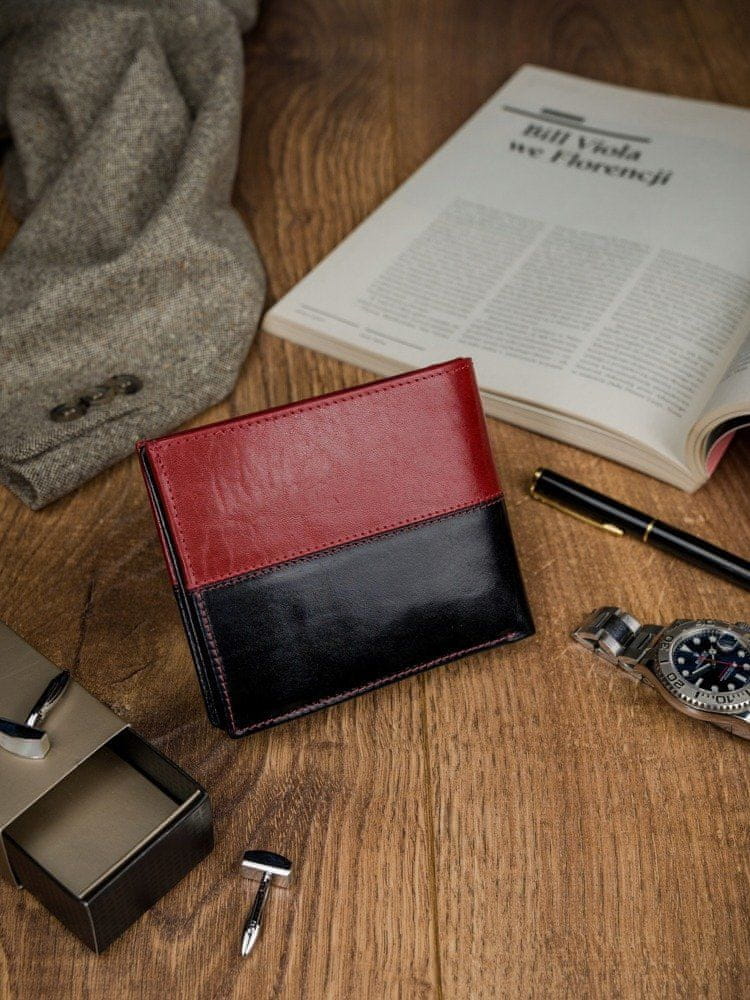 Navpična dvobarvna zložljiva usnjena denarnica Celoten opis