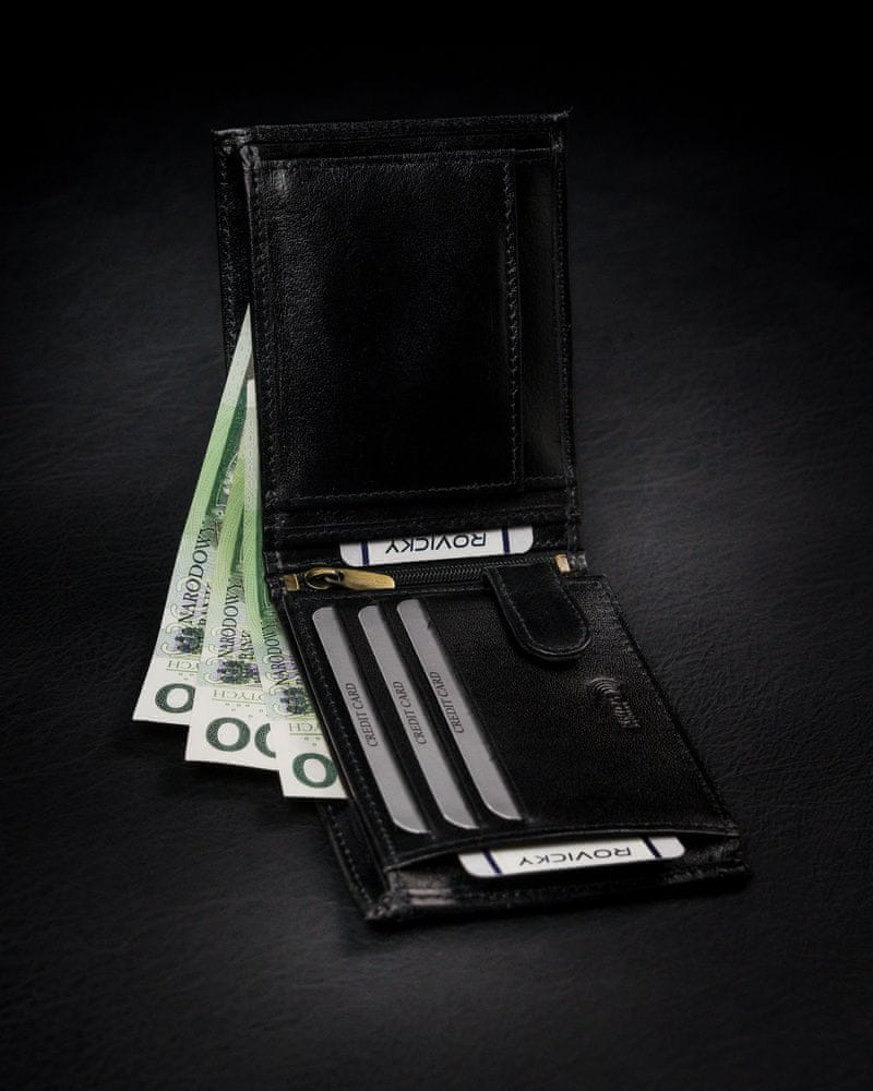 Tanka moška denarnica iz naravnega zrnatega usnja s predalom na zadrgo Rovicky