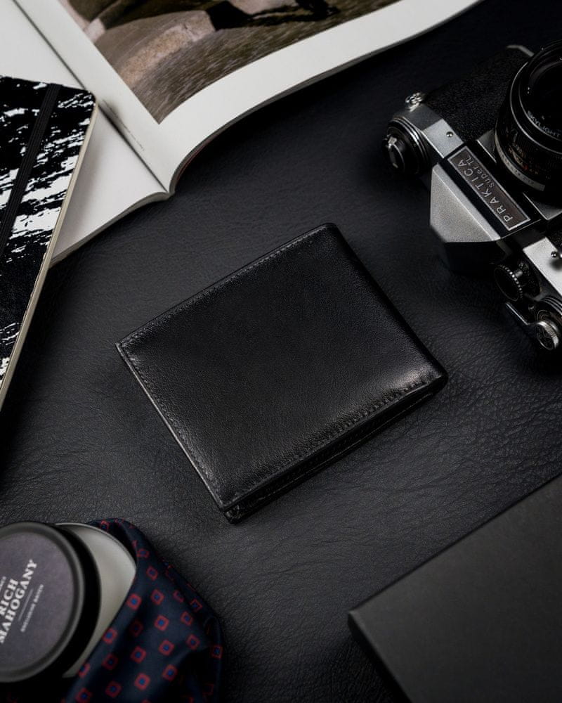 Moška denarnica poljske znamke Rovicky iz zelo trpežne, naravne zrnate goveje kože, subtilno sijoče. Izdelana na tradicionalen način, mehka in prijetna na dotik. Z izbiro denarnice iz tega materiala ste lahko prepričani, da kupujete izdelek, ki bo trajal leta!