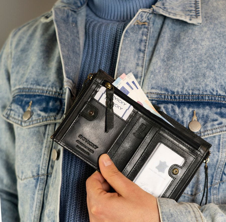 Rovicky Velika denarnica v retro stilu z dvema žepoma za kovance
