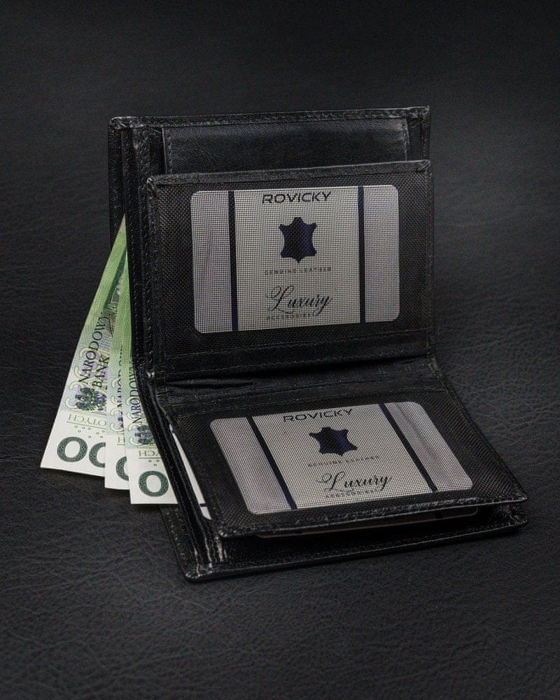 Rovicky Vertikalna moška denarnica brez zaponke iz sijočega naravnega usnja