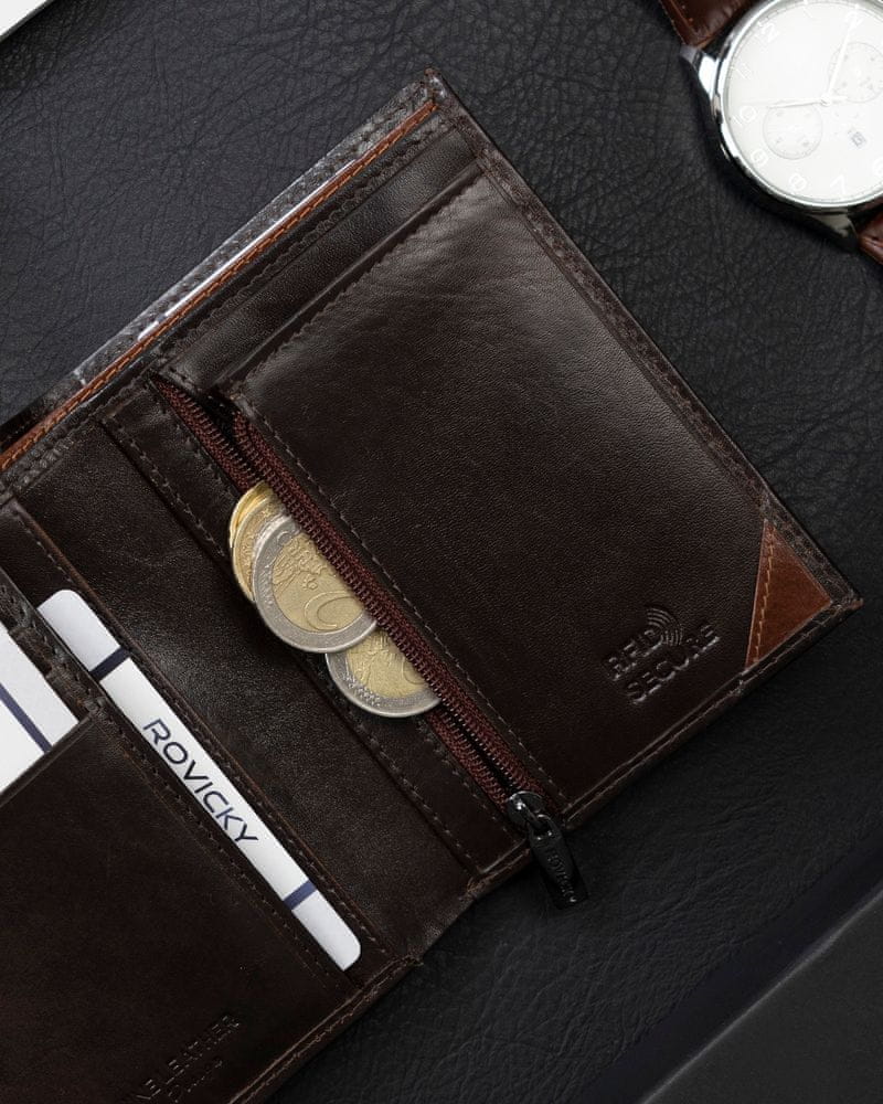 Navpična moška denarnica s srebrnim poudarkom, naravno zrnato usnje Rovicky