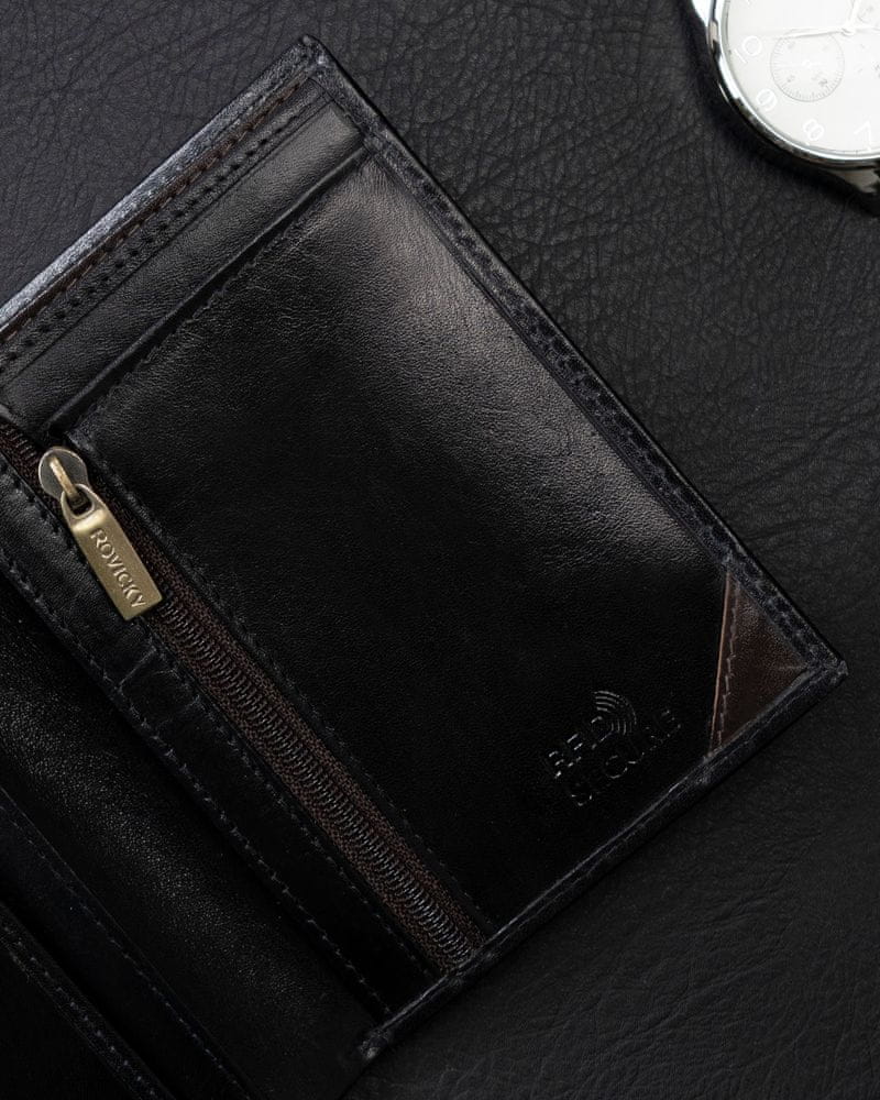 Rovicky Vertikalna moška denarnica z zlatim poudarkom, naravno zrnato usnje
