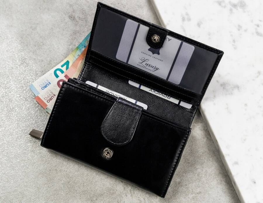 Velika, usnjena ženska denarnica z RFID sistemom Celoten opis
