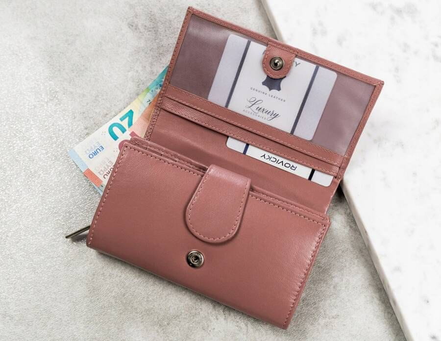 Velika, usnjena ženska denarnica z RFID sistemom Celoten opis
