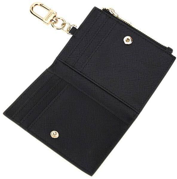 Elegantna torbica za kartice in drobnarije Guess. Črna izvedba z zlatimi detajli. Celoten opis