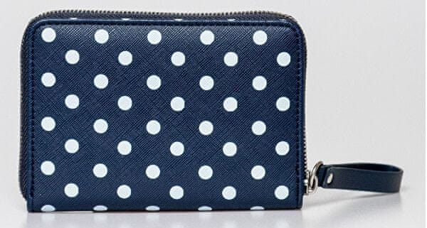 Ženska denarnica srednje velikosti. V elegantni modri barvi z igrivim pikčastim vzorcem. Celoten opis