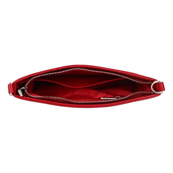 Ženska usnjena denarnica v intenzivno rdeči barvi. Eleganten kovinski logotip na sprednji strani za eleganten poudarek. Celoten opis