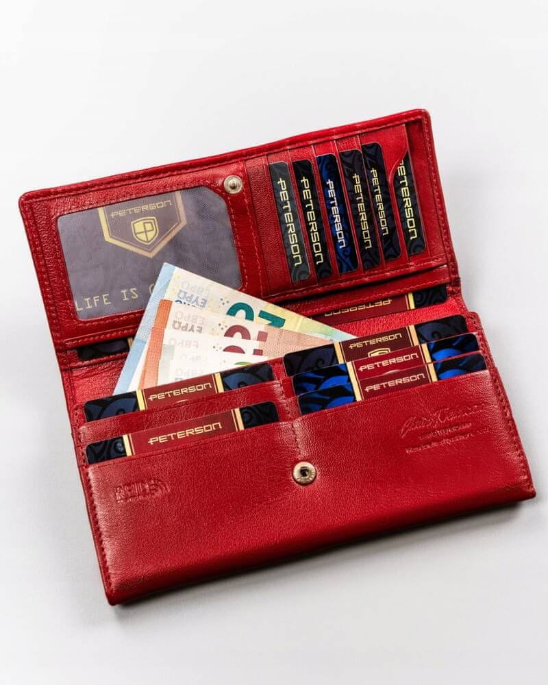 Peterson Velika, usnjena ženska denarnica s kljukico in zaponko