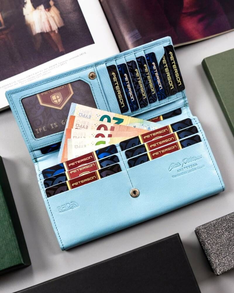 Peterson Velika, usnjena ženska denarnica s kljukico in zaponko