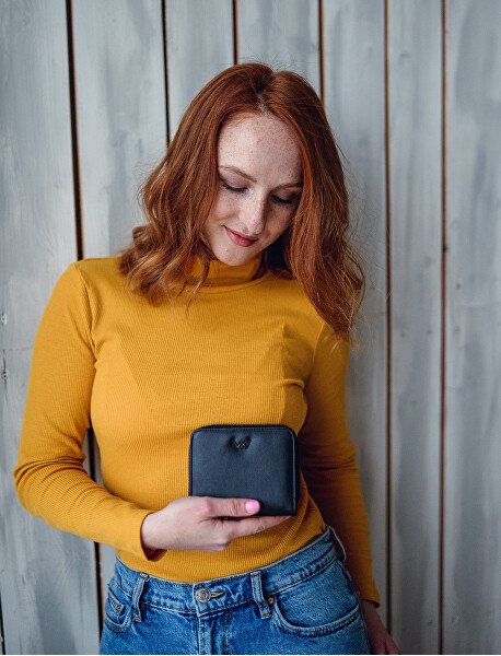 »Ste se že kdaj spopadali z dejstvom, da denarnica ni prišla v torbico? Prednost Gibsonove črne denarnice je, da je neverjetno kompaktna in jo zlahka skrijete v majhni torbici.«