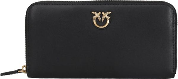 Ženska usnjena denarnica v črni barvi. V srednji velikosti. Celoten opis