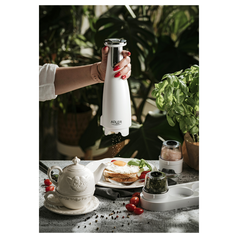 Električni mlinček AD 4449 je izjemno priročen in enostaven za uporabo. Kapaciteta enega mlinčka je 150 ml, tako da vam ni treba skrbeti za redno polnjenje. Napravo napolnite z USB kablom in po 2,5 urah lahko v celoti uporabljate njene funkcije.