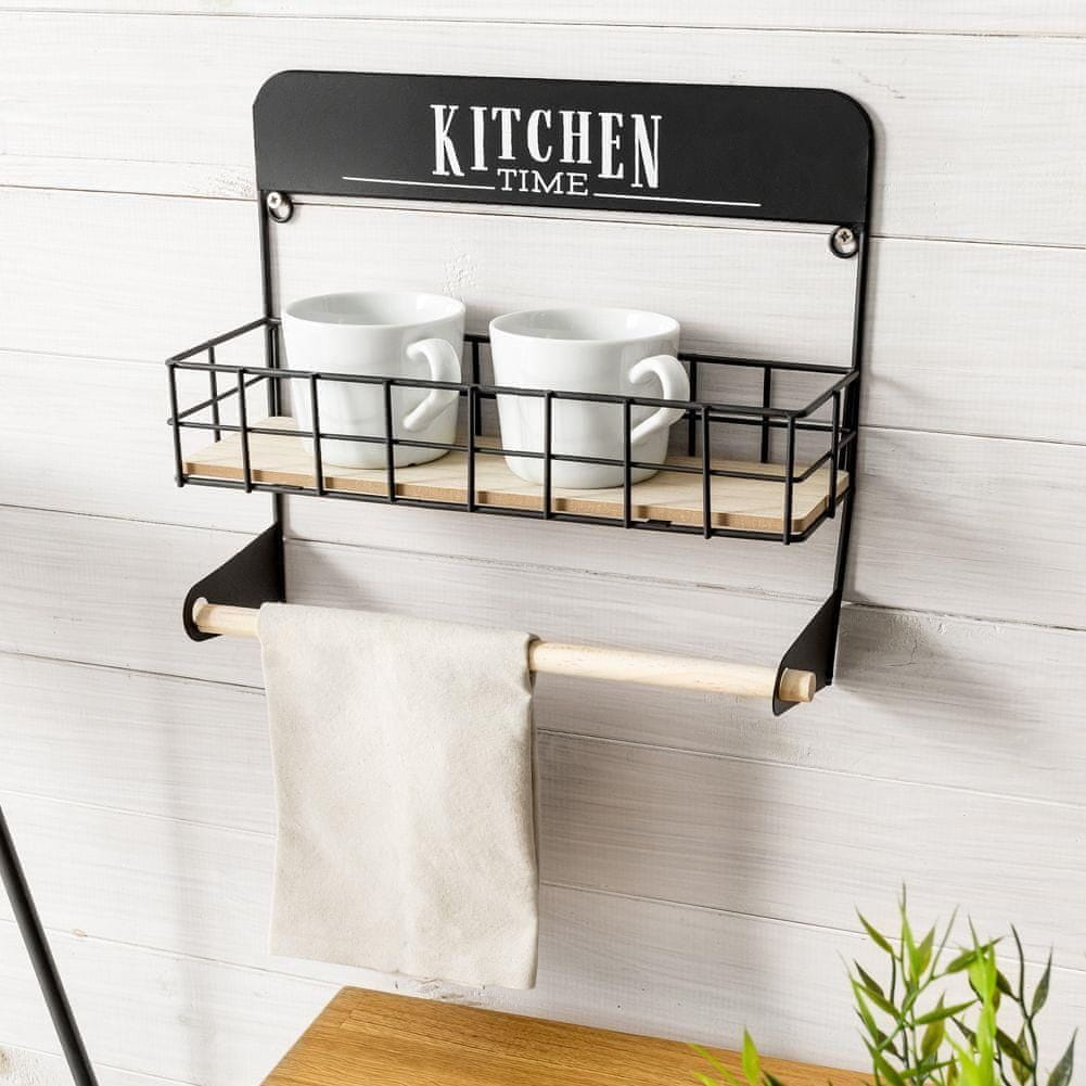 Praktično držalo za papirnate brisače s polico za začimbe. Material: kovina, les, MDF Dimenzije: dolžina 32 cm, širina 10,5 cm, višina 29 cm Podrobnosti: – Držalo za papirnate brisače s polico – Polica se lahko uporablja za shranjevanje npr. posodic za začimbe – Izvirna industrijska oblika v slogu LOFT.