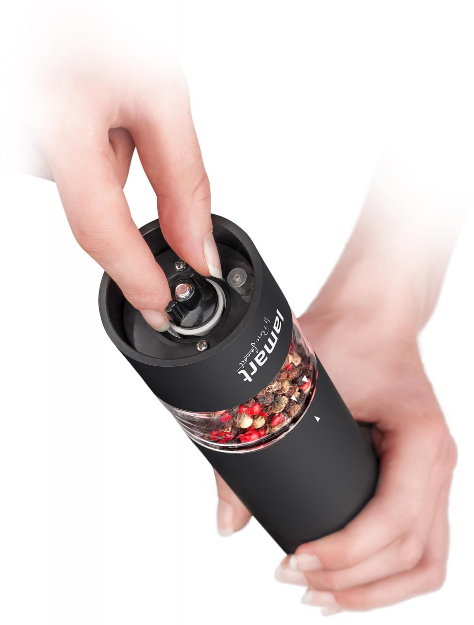 Mlinček za začimbe je izdelan iz mehke plastike, s keramičnim mlelnim mehanizmom, ki ima nastavljivo grobost mletja. Mlinček lahko po pritisku na gumb obvladate z eno roko. Celoten opis