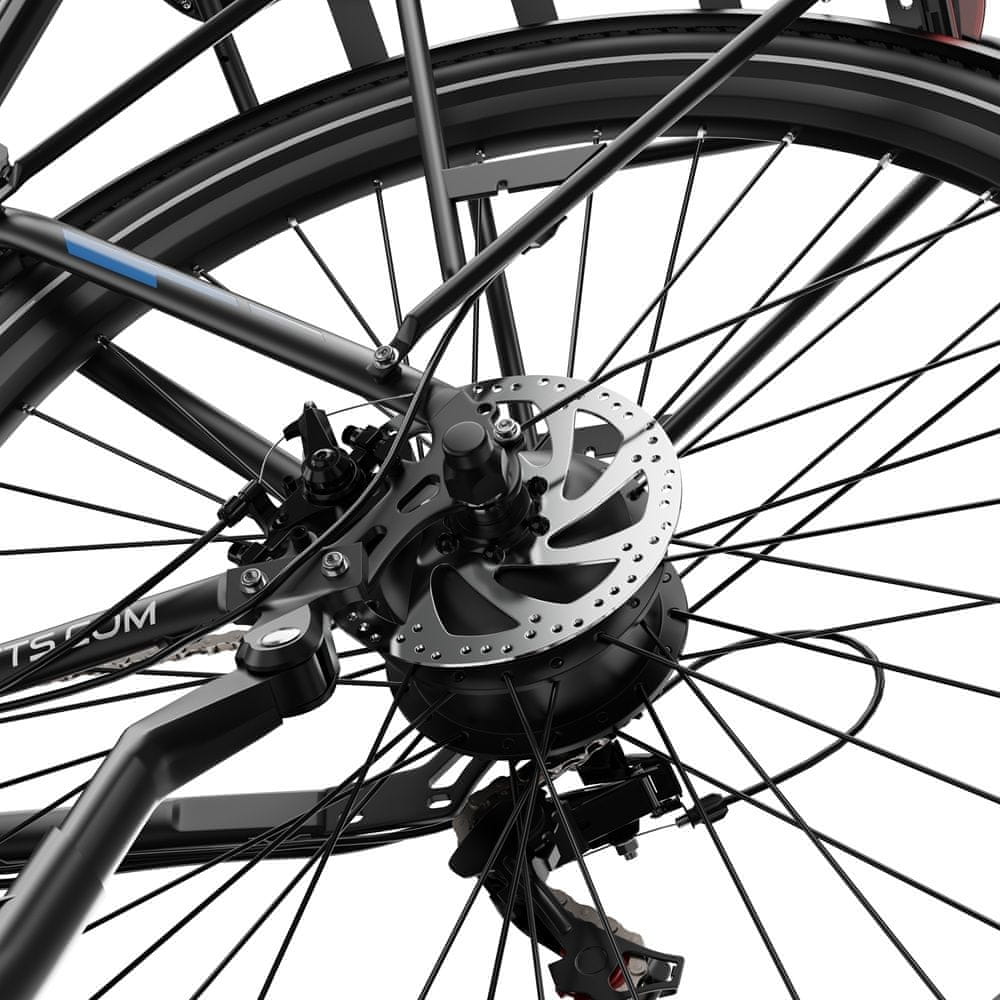 Zmogljiva baterija z učinkovitim dosegomBaterija 36V 13Ah z litij-ionskimi celicami 18650 omogoča doseg do 40 kilometrov v čistem električnem načinu in do 65 kilometrov z uporabo pomoči pedala. Polnjenje traja 6–8 ur, kar zagotavlja pripravljenost za vsakodnevne potrebe.