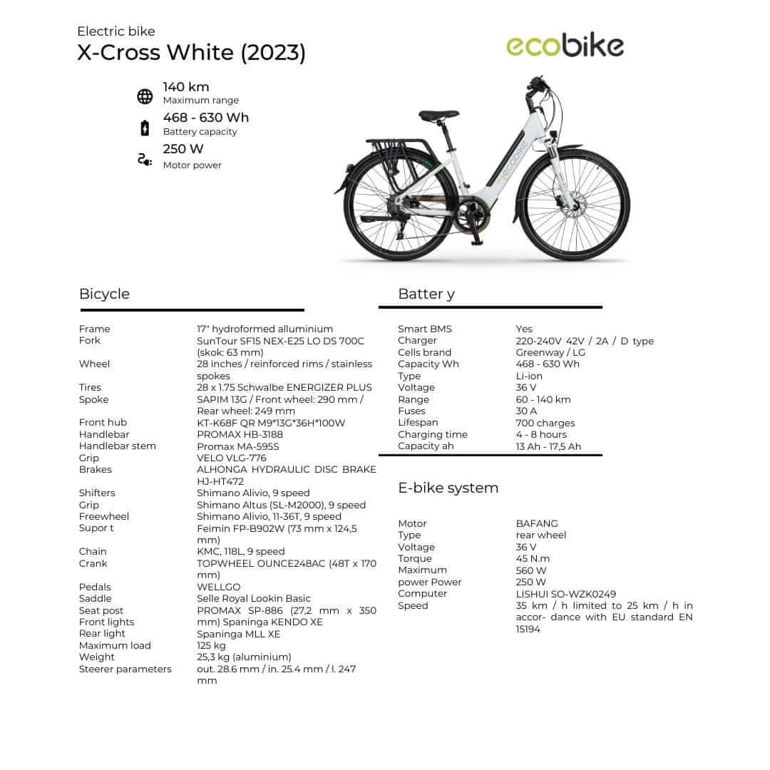 Eco Bike Električno kolo X-Cross 14,5Ah/522Wh, belo 17"