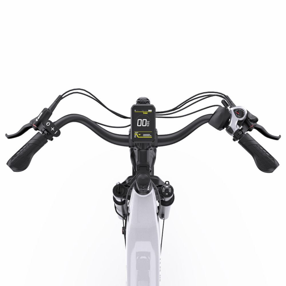Aluminijasti okvir je lahek in trpežen, ter dopolnjen s 7-stopenjskim menjalnikom Shimano za natančno kontrolo hitrosti. To omogoča prilagodljivo vožnjo glede na potrebe in teren.