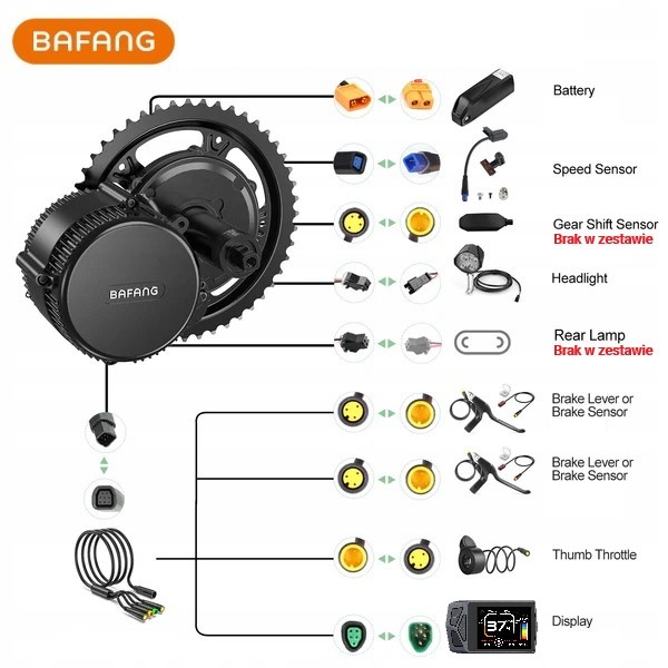 - Komplet vsebuje navodila za uporabo, ki vsebujejo glavne informacije o pravilni uporabi, delovanju in namestitvi električnega kompleta Bafang, zaslona in dodatnih delov.