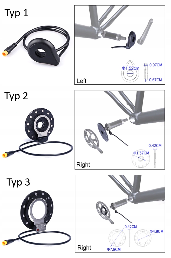 Senzor se običajno uporablja, ko so originalne zavorne ročice integrirane z menjalniki kolesa ali s hidravličnimi zavorami. Elektronski senzor zavor je nameščen na zavorni ročici in med zaviranjem se ročica premakne, kar zazna Hallov senzor in v delčku sekunde izklopi motor.