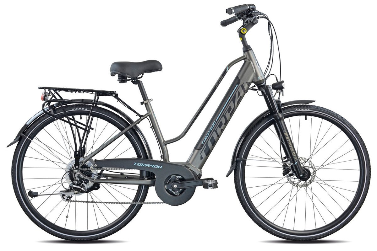 Žensko električno treking kolo Torpado Altea je narejeno iz vzdržljivega aluminija skozi izpopolnjen postopek hidravličnega oblikovanja okvirja s ‚HRB‘ tehnologijo. Kolo ima notranje napeljave, kolesi velikosti 28", pomoč pri vožnji pa zagotavlja 36V in 250W motor. Zanesete se lahko na centralno vgrajen motor proizvajalca Ananda. Centralno vgrajen motor doprinese k večji stabilnosti kolesa med vožnjo, zaradi bolj enakomerne razporeditve teže kolesa. Skupaj z LCD zaslonom na krmilu, s 5 stopnjami pomoči, boste uživali v terenski vožnji, na potovanjih in podeželju, saj pomoč motorja vključuje tudi pomoč pri hoji. Kolo je opremljeno za vse terenske situacije. V temi vas varujejo luči in odsevniki, večje udobje na kolesu pripomoreta vzmetena vilica in mehko oblazinjen sedež. Močan prtljažnik za kolo s stranskim