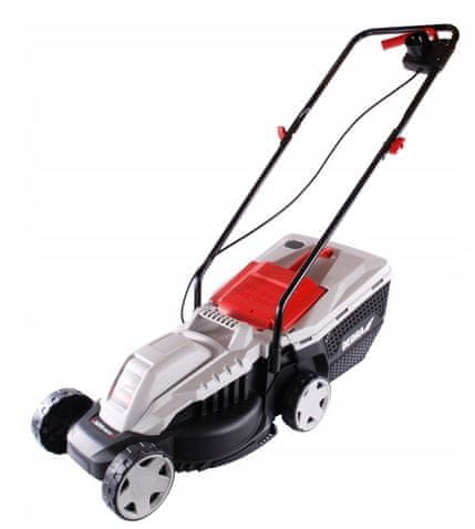 Električna kosilnica z močjo 1200 W je visokokakovosten kos opreme, ki bo uporaben na vsakem vrtu. Zahvaljujoč učinkovitemu in okolju prijaznemu motorju je naprava odlična za redno košnjo trate. Kosilnica Dedra je izjemno tehnološko napredna naprava, ki jo bo vsak ljubitelj vrtnarjenja vzljubil na prvi pogled. Ta moderna in učinkovita električna kosilnica je rešitev za tiste, ki ne cenijo le udobja pri delu z vrhunsko opremo, temveč tudi tiho in učinkovito delovanje. Je zelo kompaktna, a hkrati zelo robustna kosilnica. Poleg tega je za to napravo značilno enostavno in intuitivno upravljanje, med drugim zaradi lahkega, vzdržljivega ohišja ter ergonomskega in zelo preprostega upravljanja. Večja natančnost, večja mobilnost, več prostora v garaži – velikost te kosilnice je obratno sorazmerna s prednostmi, ki jih ponuja. Zahvaljujoč učinkovitemu motorju je delo s tem strojem neverjetno enostavno. Kosilnico poganja zmogljiv 1,2 kW električni motor. Ta zasnova omogoča učinkovito delovanje. S širino košnje 320 mm je idealna za majhne ali srednje velike vrtove. Kompaktna zasnova in kolesa omogočajo enostavno manevriranje. Višino košnje je mogoče nastaviti v tri položaje (30/50/70 mm). Zložljiv ročaj omogoča enostavno shranjevanje in transport. Prednosti: Velika mrežasta košara za travo navdušuje ne le s svojo velikostjo. Aerodinamični pretok zraka omogoča optimalno polnjenje košare, velika odprtina in praktičen ročaj za prenašanje pa omogočata enostavno in popolno praznjenje. Velika kolesa ščitijo travo, zagotavljajo boljši oprijem in zagotavljajo enostavno premikanje po travi ali neravnem terenu. Ohišje je izdelano iz visokokakovostne plastike, kar zagotavlja vzdržljivost in odpornost proti poškodbam. Lahka in kompaktna zasnova naredi košnjo čisti užitek! Parametri: Tip motorja: Električni Nazivna moč motorja: 1,2 kW Hitrost vrtenja: 3400 vrt/min Širina košnje: 320 mm Način pogona: Ročno podajanje Nastavitev višine košnje: 3-stopenjska Najmanjša višina košnje: 30 mm Največja višina košnje: 70 mm Premer sprednjih/zadnjih koles: 14 cm Ohišje: Plastika Prostornina košare za travo: 30 l Teža: 7,3 kg