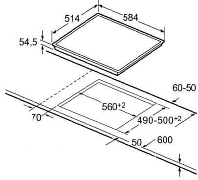 - dimenzije vgradne odprtine [cm]: 2–5,45 × 56 × 49