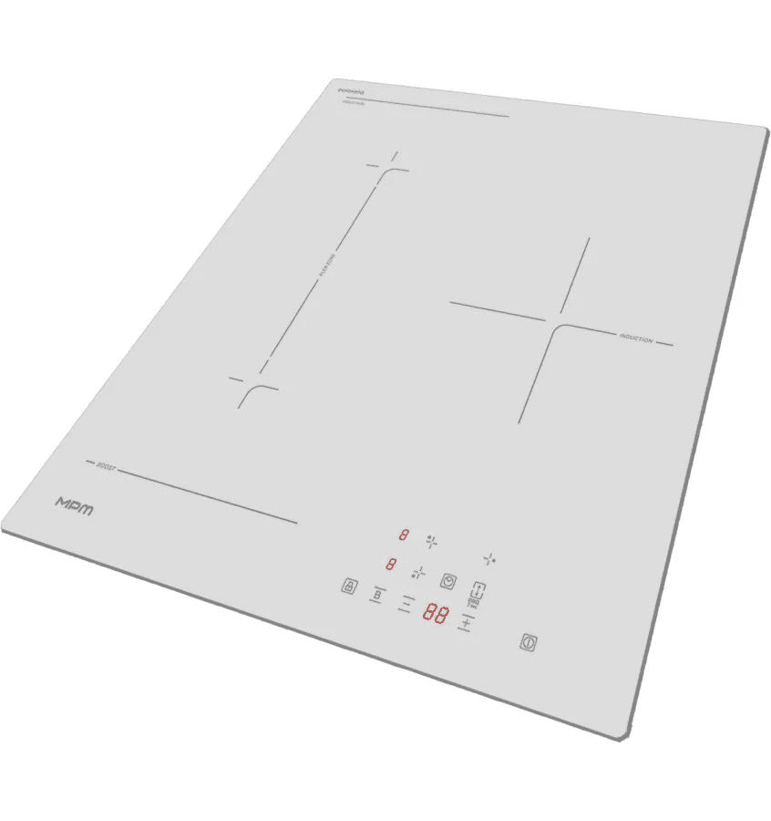 Indukcijska kuhalna plošča MPM-45-IM-16/W je kompaktna indukcijska kuhalna plošča s širino 45 cm, opremljena s praktično funkcijo Booster in prilagodljivo cono Flex Zone. Združuje sodobne rešitve, udobje vsakodnevnega kuhanja in elegantno obliko. Zahvaljujoč varni tehnologiji vam omogoča svobodno uresničevanje vaših kulinaričnih idej, bela steklena površina pa v kuhinjo vnese pridih lahkotnosti in stila. Skrbno izbrani materiali zagotavljajo ne le vzdržljivost, temveč tudi enostavno čiščenje.