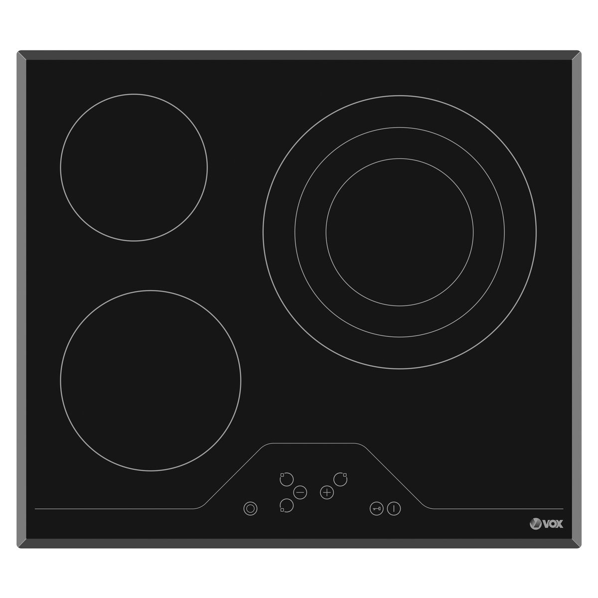 Vgradna steklokeramična plošča EBC 315 DB znanega proizvajalca VOX se ponaša s petimi ploščami za kuhanje (3 kuhališča, med katerimi ima eno dve možnosti razširitve), skupno močjo 6,5 kW, senzorskimi tipkami, varnostim zaklepanjem, brezplačnim kablom električnega napajanja.