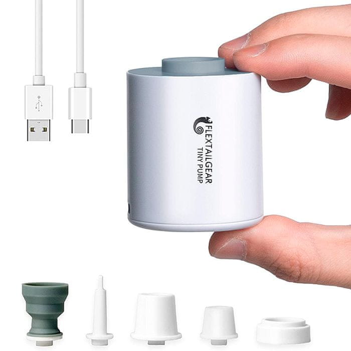 Netscroll Majhna prenosna zračna črpalka za napihovanje, 1300mAh Baterija, USB polnjenje, za napihljive blazine, postelje in vrečke za shranjevanje, žepna zračna črpalka, 5 nastavkov, MiniAirPump