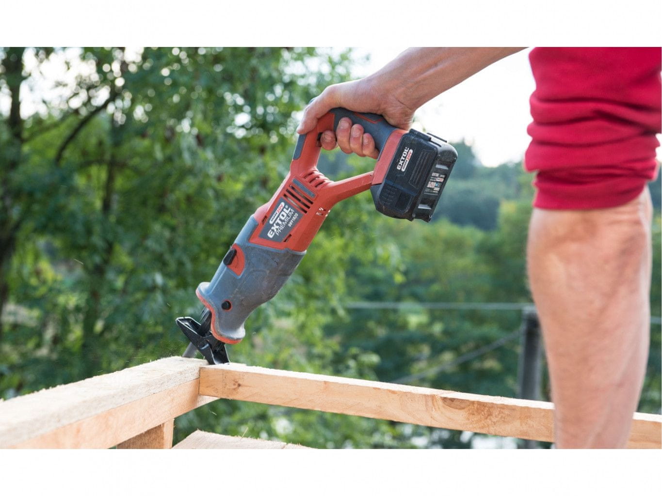 Akumulatorska žaga je namenjena rezanju lesa, plastike, kovin in drugih podobnih materialov v delavnici, garaži ali na vrtu. S prilagodljivim žaginim listom lahko poleg ravnih in ukrivljenih rezov izvajate tudi reze na težko dostopnih mestih (vogali, ob steni) in obrezujete drevesa. Glavna prednost te žage je baterijski pogon, ki vam omogoča, da žago vzamete s seboj, kjerkoli jo potrebujete, ne glede na to, ali je na voljo električna napeljava. Žaga ima varnostno blokado pred nenamernim zagonom in je opremljena z nastavljivo prednastavitvijo, ki jo lahko prilagodite glede na material, ki ga je treba rezati. Za običajno delo zadostujeta ena ali dve 2000mAh bateriji, ki ju lahko hitro napolnite s hitrim polnilnikom, za zahtevnejše ali daljše delo pa priporočamo večje baterije s kapaciteto 4000–8000 mAh. Baterijo lahko uporabljate v vseh vrstah orodij EXTOL SHARE20V. Zaradi uporabljene litij-ionske tehnologije ga je mogoče kadar koli znova napolniti, ne da bi se zmanjšala njegova zmogljivost. Li-ionska baterija zelo počasi izgublja energijo zaradi samopraznjenja, zato je dolgo časa napolnjena in pripravljena za uporabo.