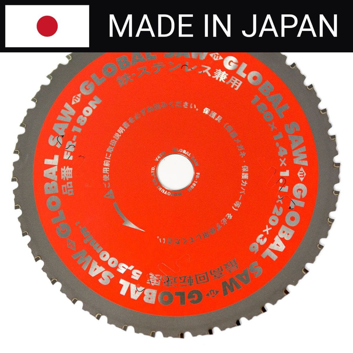 GLOBALNA ŽAGA 180 × 1,4/1,1 × 20 mm / 36z Krožni žagin list CERMET za jeklo, ki ga proizvaja japonsko podjetje Motoyuki, eno vodilnih v proizvodnji najkakovostnejših karbidno nazobčanih listov. cermet .