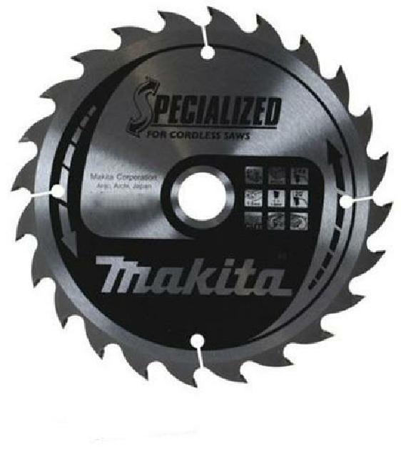 Izboljšane rezalne plošče, izdelane posebej za akumulatorske žage. Zdaj so na voljo rezila za delo v lesu z najbolj priljubljenimi modeli akumulatorskih krožnih žag – vse v kakovosti Makita. Zelo tanka, odlično napeta jeklena pločevina olajša delo v lesu. Natančno brušen visokokakovosten volframov karbid omogoča enostavno in gladko rezanje in dolgo življenjsko dobo Uporaba: les Tehnični podatki: Tip žage : Akumulatorska ročna žaga za kovino Premer diska: 165 mm Premer luknje za disk: 20 mm Število zob: 24 Debelina zob: 1 5 mm Debelina diska: 1 mm Konica zoba kot: 20o Prečno rezanje: DA Vzdolžno rezanje: DA Natančnost reza: Normalno Max. število vrtljajev na minuto: 4.770